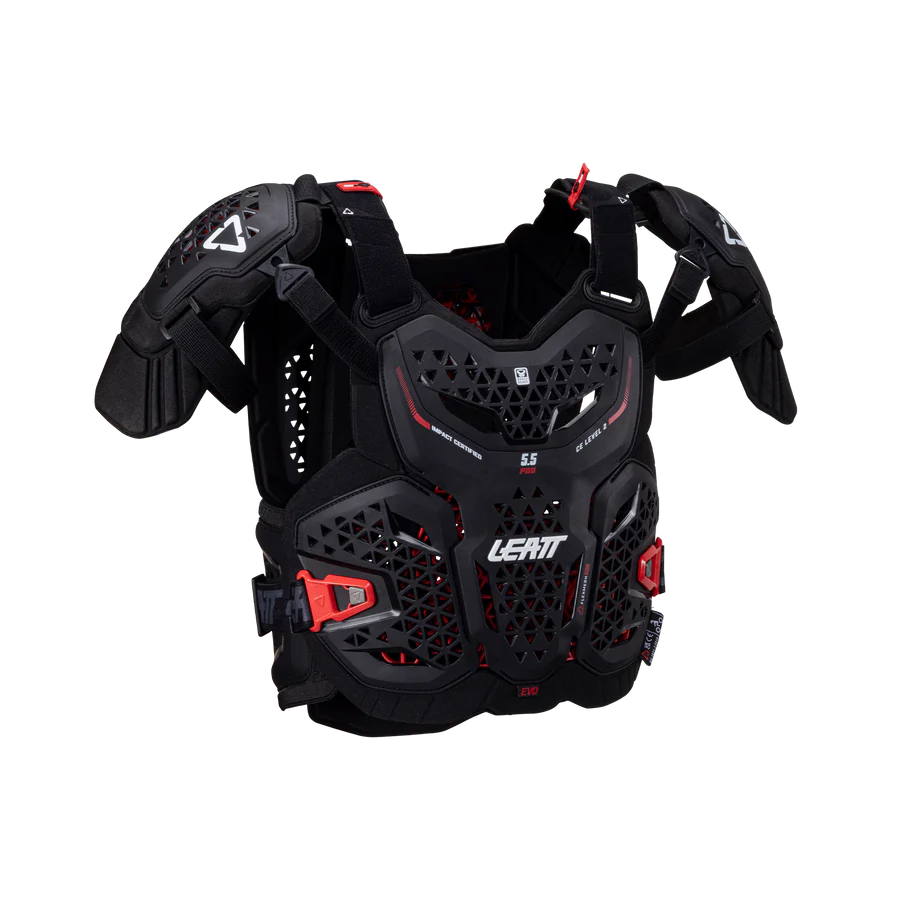 The Chest Protector 5.5 Pro EVO provides premium protection for the chest, back and shoulder. This model is 30% lighter and 50% more ventilated compared to the 2023 model, offering enhanced comfort and breathability on extended rides. Constructed from a hard shell and FlexMesh Pro combination, the Chest Protector 5.5 Pro EVO is ventilated armor that not only protects but also keeps you cool under pressure. The FlexMesh Pro design makes excellent use of flex joints, allowing for 3D flexing and an exceptional fit. The multi-plate articulating design enhances comfort by allowing natural movement, while the adjustable hard flank panels provide exceptional rib and side protection. For added versatility, the front and rear plates are removable, and the BraceOn system allows for a seamless neck brace fit.